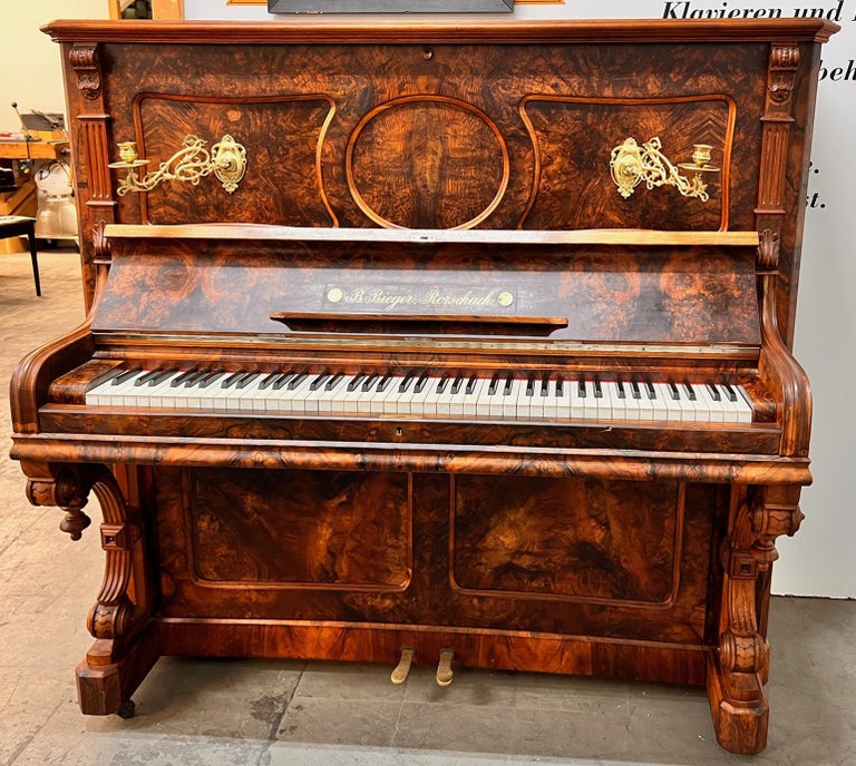 Swiss German Upright Piano Burled Walnut Fully Rebuilt Candlestickholders At 1stdibs